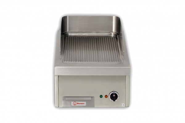 Die Berner BGADS40R Tisch-Griddleplatte mit 4.500 Watt ist die kleinste Grillplatte aus der Serie "System 70" aus dem Hause Berner Kochsysteme mit gerillter Bratfläche. Dieses System 70 bietet eine extrem breite Palette an Gastronomiekochgeräten als Standgerät oder als Tischmodell zum einrichten von Gastronomieküchen in verschiedenen Größen. Das Tiefenmaß dieser Baureihe ist 70 cm wie sie in den meisten Gerwerbeküchen zu finden ist. Schnuppern Sie doch mal durch unseren Gastrotechnikshop oder lassen Sie sich einfach telefonisch oder persönlich durch GastroXtrem beraten...